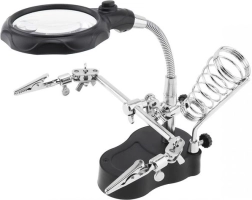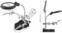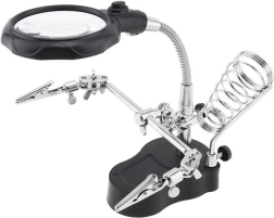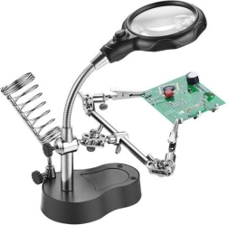 Experience precision and convenience with the Third Hand Soldering Kit, an essential tool for hobbyists and professionals alike. This versatile kit includes a powerful magnifying glass, an LED lamp, and a soldering iron holder, making it perfect for delicate tasks and detailed work.