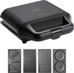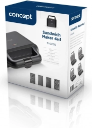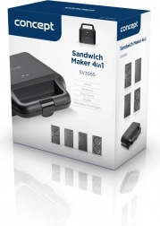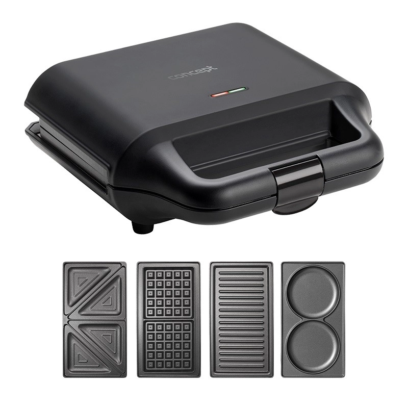 The 4-in-1 Sandwich Maker in an elegant black design from Concept is a practical helper for quick meal preparation. With its help, you can prepare: