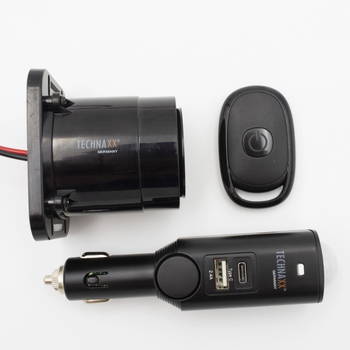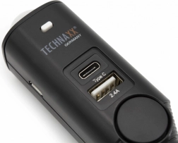 It is further equipped with infrared remote control with a range of up to 10 meters. Integrated USB ports ensure convenient charging of devices with different output energies: USB-C output at 5V/3.0A and a classic USB port at 5V/2.4A. Activation based on motion detection via the PIR sensor allows automatic triggering of the alarm.