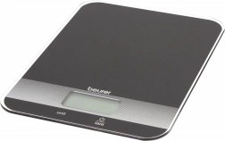 Beurer kitchen scale in elegant black color is equipped with a practical tare function and an easy-to-read LCD display. The glass surface provides a modern look and easy cleaning.