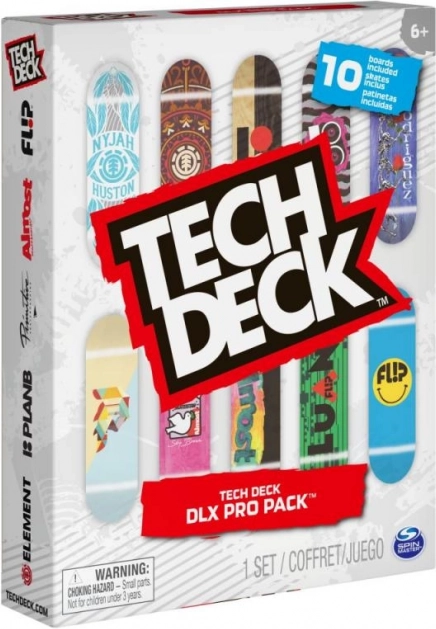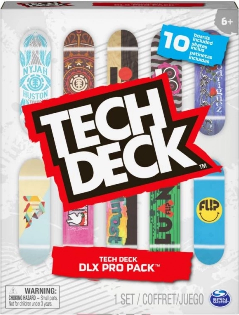 Tech Deck set of 10 mini skateboards offers the chance to control small skateboards with your fingers like a pro. Each of the ten boards is fully assembled, allowing for immediate fun and practice of fingerboarding tricks. For kids aged 6 and up.