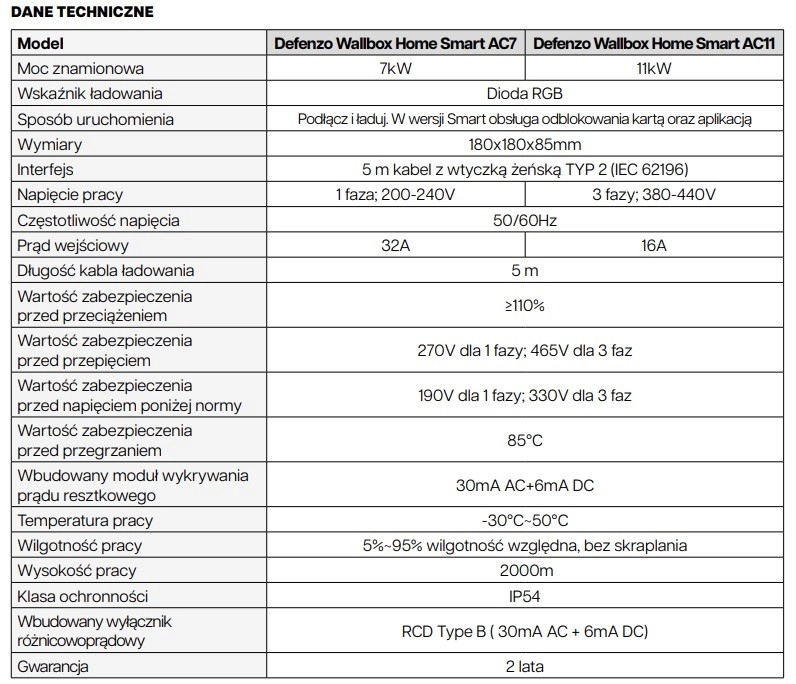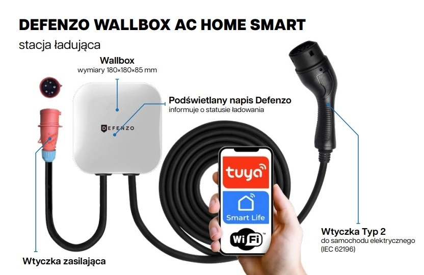 The Defenzo Wallbox Home AC11 charging station is a compact and elegant device protected by a robust white casing with IP54 protection class, ensuring resistance to weather conditions and mechanical damage. With the Tuya or Smart Life mobile apps you can: