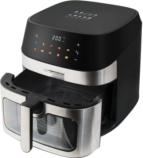 Enjoy your favorite dishes in a healthier version with the oil-free fryer Esperanza Patate Al Forno, which uses hot air circulation technology to prepare crispy fries, juicy meats, fragrant vegetables, and even roasted fruits without added fat.
