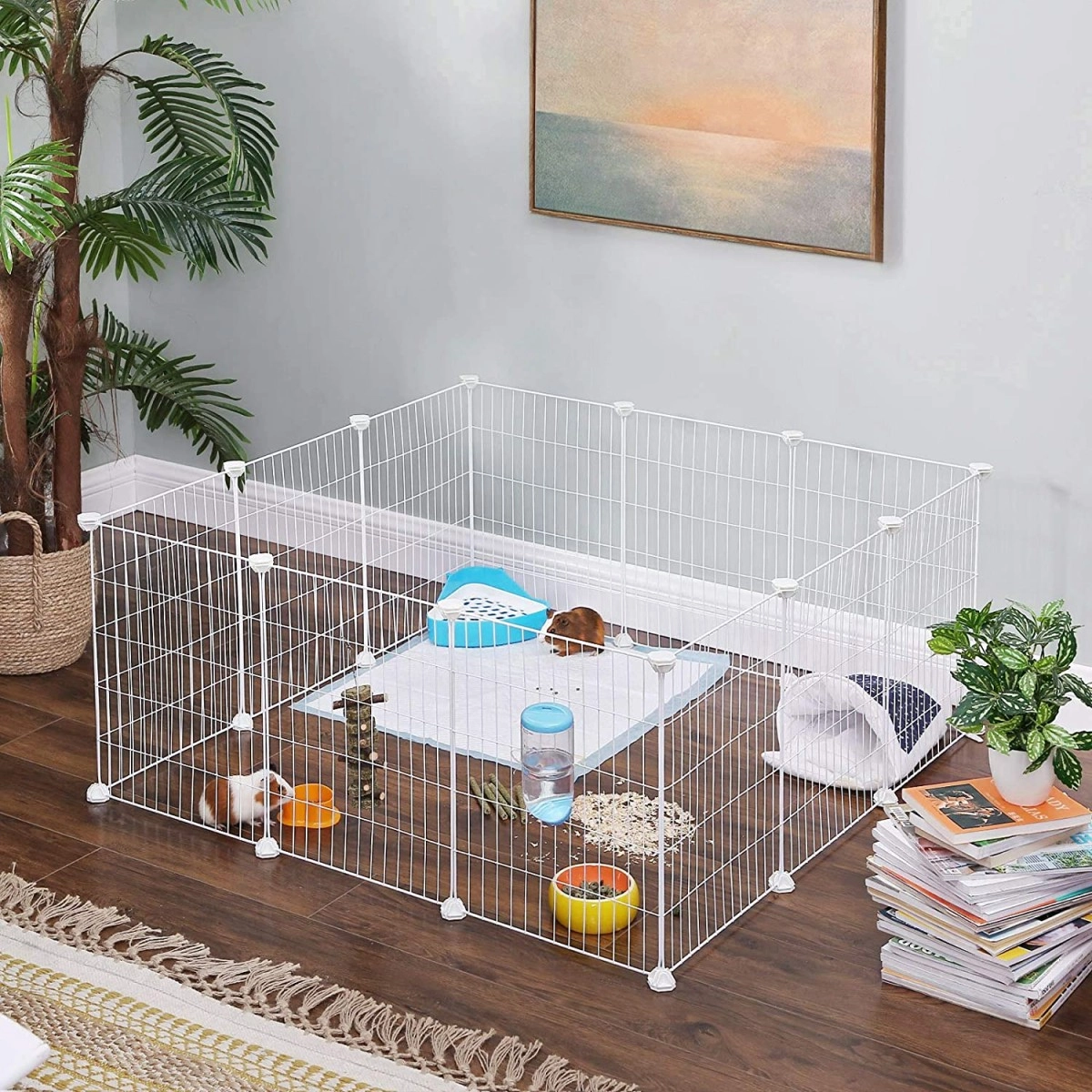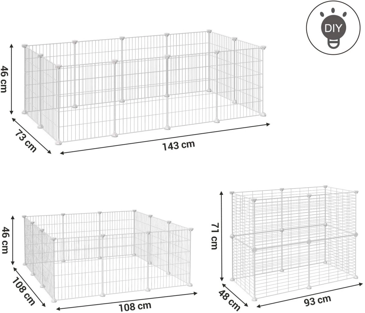 Provide your pet with a safe space with this modular playpen, perfect for hamsters, guinea pigs, hedgehogs, and other small rodents. The grid structure with gaps of only 2.5 cm prevents pets from slipping through and guarantees reliable protection. Metal panels encourage good airflow and allow for constant supervision of your pet's movement.