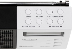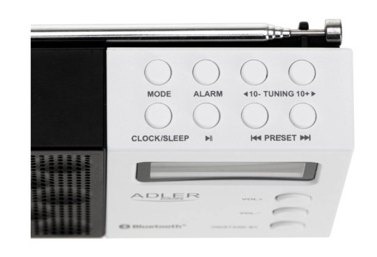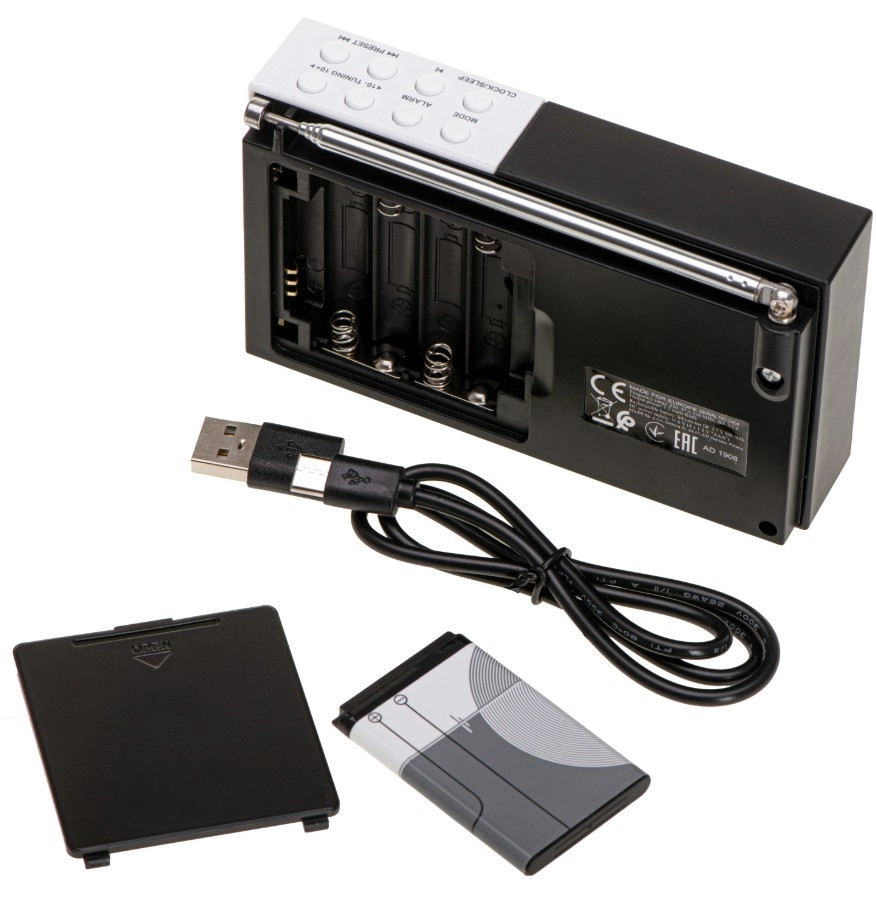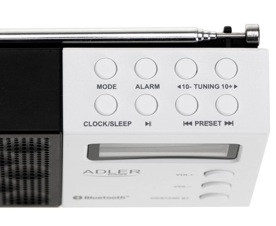 - Additional features: clock, alarm, snooze, and sleep mode.