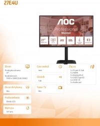 The AOC 27-inch Full HD IPS monitor is designed for comfortable use with features that protect your eyes such as blue light reduction and Flicker-Free technology. With its ergonomic design, you can adjust the screen position to your needs. The height-adjustable stand, tilt, swivel, and pivot options provide maximum flexibility.