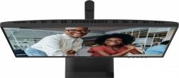 The monitor is equipped with a height-adjustable stand with tilt, swivel, and pivot options for maximum comfort.