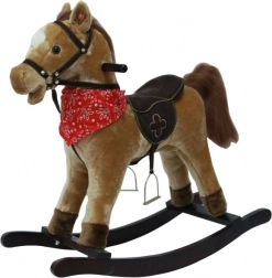 This plush rocking horse is an ideal companion for children aged 3 and up. Its soft surface is pleasant to the touch and the electronic features add even more play value. Press one ear to hear neighing, the other for hoofbeats — the tail moves in both cases.