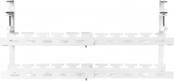 The organizer has two levels of holders, allowing for simultaneous attachment of two power strips or additional devices such as adapters, USB hubs, or routers. The clamp mounting system enables quick and non-invasive installation without the need for drilling or disturbing the furniture surface.