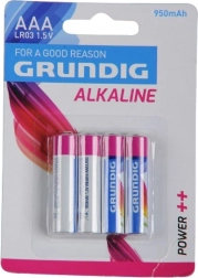 Reliable AAA alkaline batteries with 1.5 V voltage from GRUNDIG in a practical pack of 4. Ideal for everyday use in toys, remote controls, and other household devices. They offer long life and stable performance for your electronic needs. Alkaline technology, 1.5 V voltage, AAA size (LR03), pack of 4 pcs.