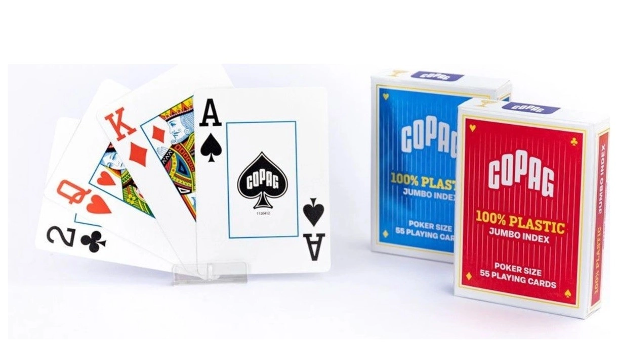 • Two decks of COPAG cards in Jumbo Face format guarantee excellent readability and long life.