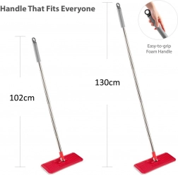 The lightweight, adjustable handle makes it easy to clean large areas and tall windows. The ultra-flat tip with a swiveling head ensures precise cleaning under the sofa, cabinets, and around furniture legs. The set includes 2 replacement microfiber covers for long life and hygienic use.