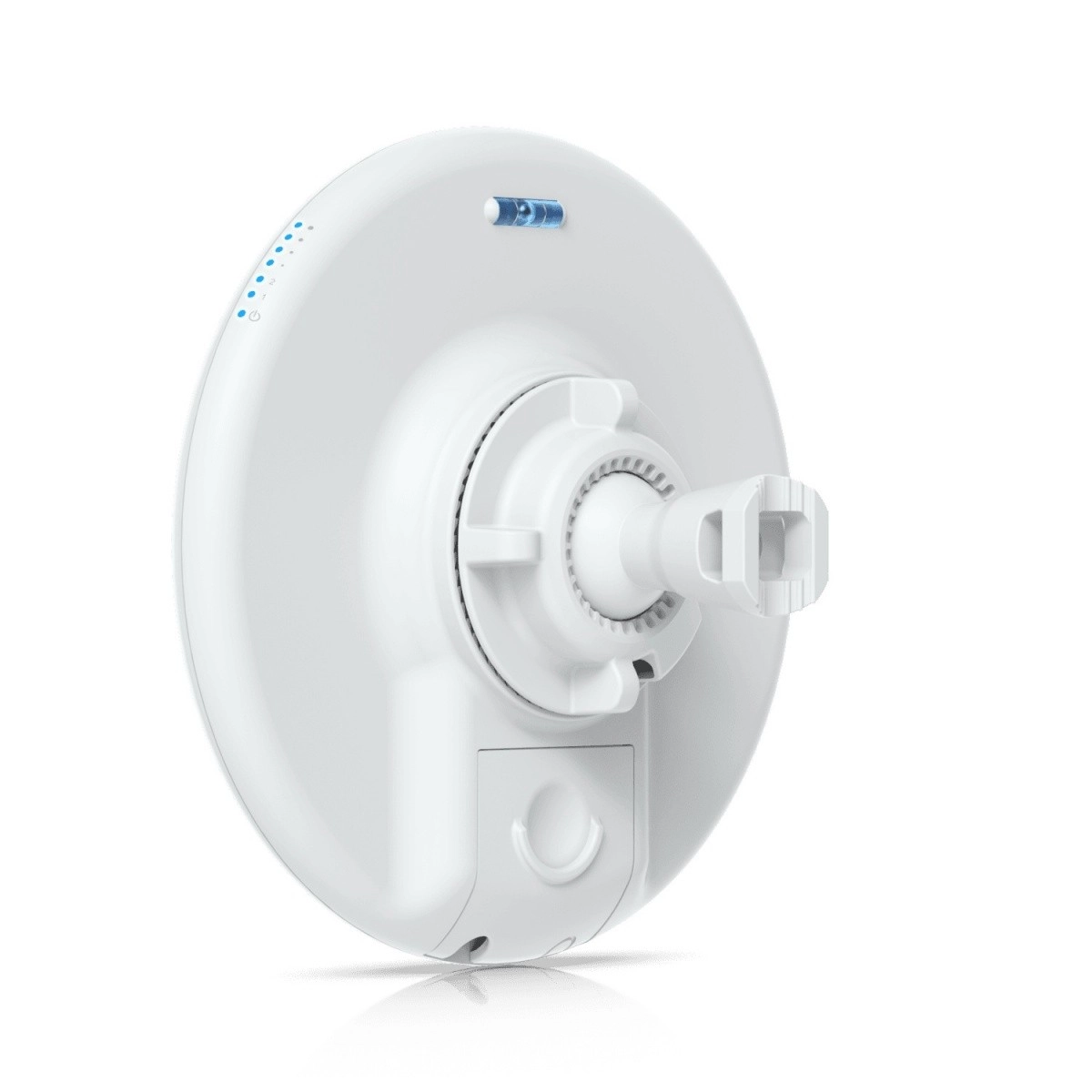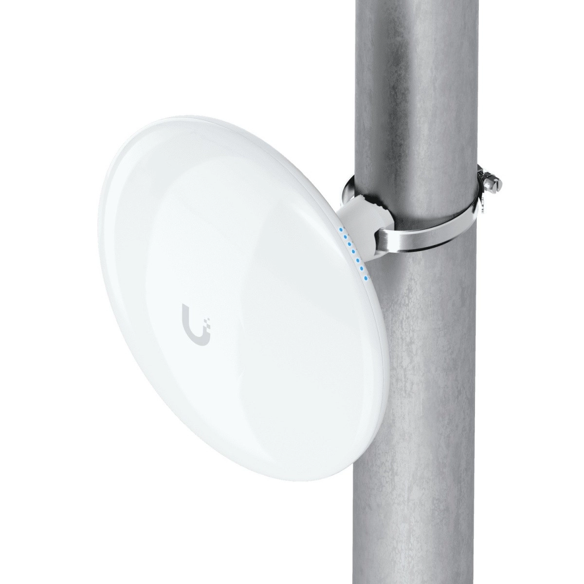 The device is designed for easy mounting on a pole or wall, with convenient LED indicators for quick status checks. Within the UniFi environment, it offers clear management, monitoring, and fast configuration for both PTP and PtMP scenarios.