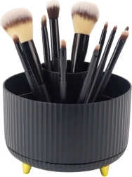 A stylish rotating makeup organizer with a 360° base keeps your brushes, lipsticks, and small accessories neatly in one place. Thanks to 5 practical compartments and an open design, you can easily store even long brushes. The sturdy ABS build ensures stability and long service life, while the modern black design enhances any vanity or desktop.