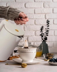 Looking for a reliable kettle for travel, the office, or a small kitchen? This travel kettle combines mobility and convenience with a powerful 1500 W output, so you can make coffee, tea, or instant meals in no time. The modern white design suits any interior, and the 360° swivel base makes handling effortless.