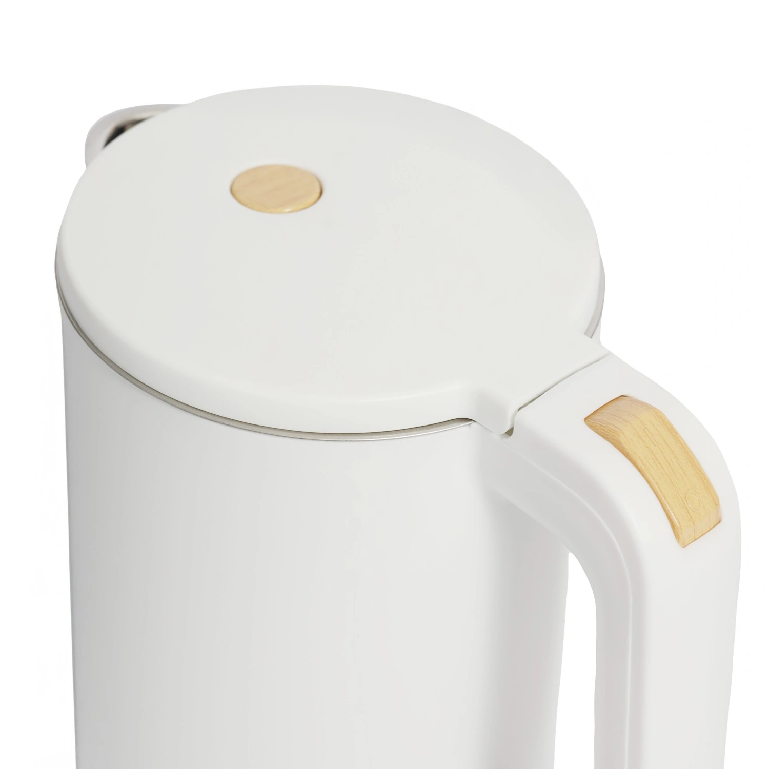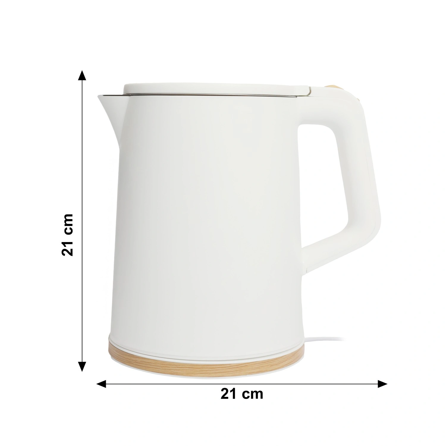 The interior stainless steel resists corrosion and is easy to clean, while the double wall improves insulation and helps keep the exterior cooler to the touch. Safety features like auto shut-off after boiling and boil-dry protection safeguard you and the appliance. Practical details such as a handle-integrated lid-release button, power-on light, and internal water level indicator enhance everyday comfort.