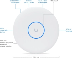 Bring the latest Wi‑Fi 7 standard to your network with the U7 Pro XGS access point. It combines high capacity, low latency, and stable coverage thanks to 8 spatial streams and intelligent RF management via dedicated spectrum scanning. Ideal for offices, schools, retail, and modern homes with high client density.