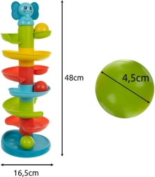 Let children discover the joy of movement and sound with a colorful ball tower and spiral slide. Drop a ball at the top and watch it roll down with cheerful rattling – a simple yet highly entertaining interactive game that keeps them engaged for long periods.