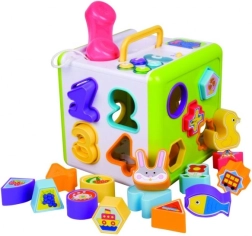 The block is equipped with light and sound effects, enhancing the play experience and aiding in the development of the child's sensory perception. Additionally, thanks to the practical handle, it is easy to carry.