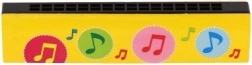 The harmonica is available in multiple color variants with playful motifs (hearts, animals, space, notes), so every child can find a favorite. Its compact size makes it easy to take on trips, to grandma’s, or to preschool.