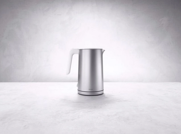 The ZWILLING ENFINIGY electric kettle brings the perfect blend of performance, safety, and minimalist design to your kitchen. The double-wall design reduces the risk of burns while helping to keep water hot for longer. The seamless stainless steel chamber is hygienic, durable, and easy to clean.