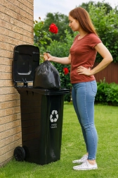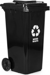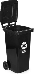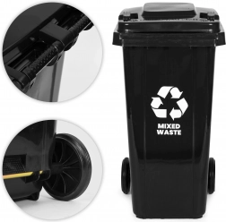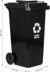 The robust 120 L mixed-waste container is made of high-quality HDPE that is resistant to UV radiation, chemicals, and mechanical damage. The sealing lid prevents water ingress and odor leakage, keeping the surroundings clean and hygienic. Thanks to the ergonomic handles and rubber wheels on a metal axle, the bin is easy to move even when fully loaded.