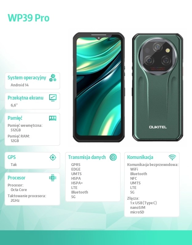 Looking for a phone that can handle every workday and weekends in the field? OUKITEL WP39 Pro 5G combines extreme durability with smooth performance and long endurance. Certifications IP68, IP69K, and MIL‑STD‑810H protect against water, dust, and shocks, while the 6.6" FHD+ IPS display with Corning Gorilla Glass 5 provides excellent readability and scratch resistance.