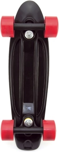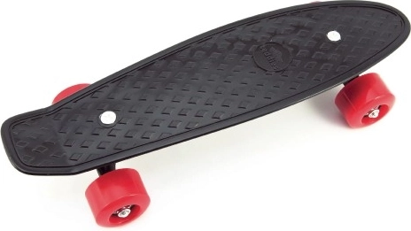 A lightweight, agile pennyboard for beginners featuring a compact 43 cm length, 60 kg load capacity, and stable metal trucks. The black deck with a non-slip surface and red wheels ensures a safe and fun ride for kids aged 8 and up.