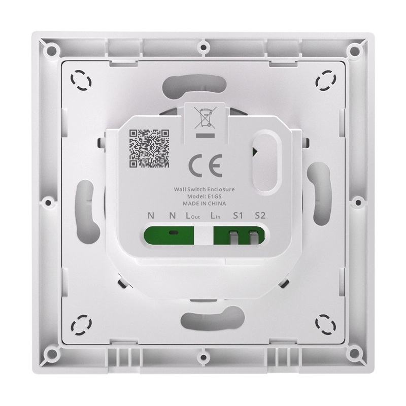 The ultra-thin Sonoff E1GS wall switch cover is ideal for modern interiors and compact installations. It requires a neutral wire (N) and is compatible with SONOFF ZBMINIR2, MINIR4M, and MINIR4 modules. It offers quick installation thanks to the clip-on system, an elegant design, and a durable PC material build for long service life.