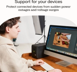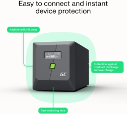 The UPS is equipped with RJ45 surge protection for network devices (router, NAS, PC) and supports management via a mobile app for easier control and monitoring. The short transfer time (usually under 10 ms) minimizes the risk of data loss and workflow interruptions.