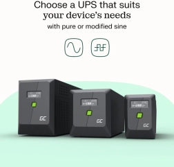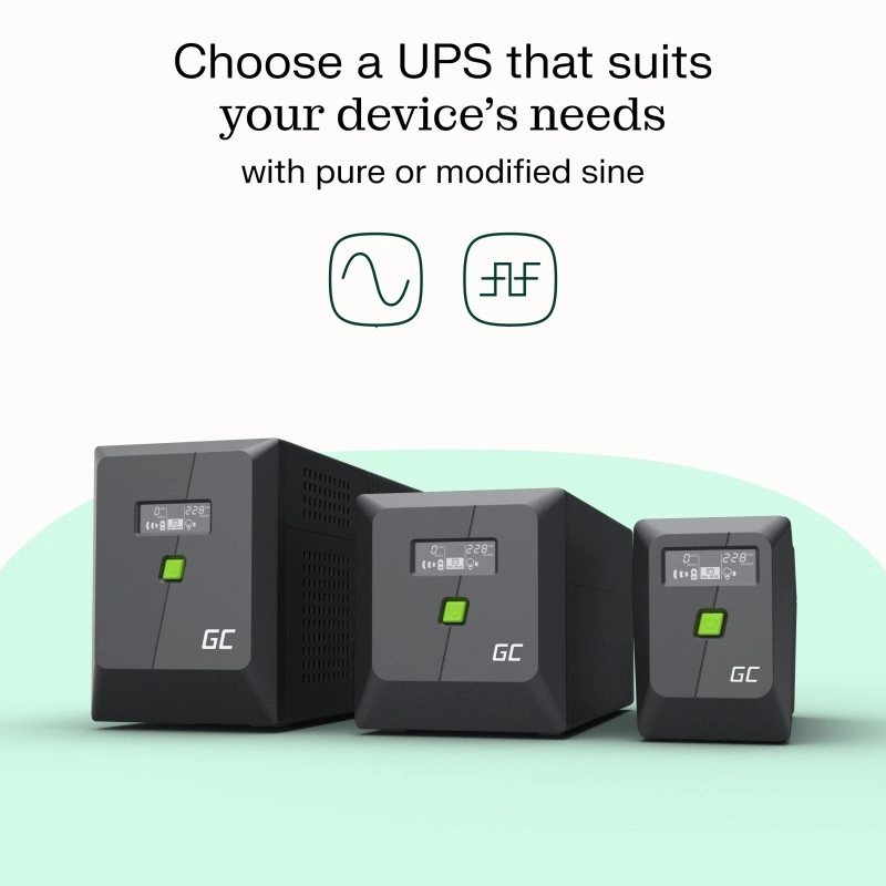 This compact UPS is ideal for a home office, workstations, routers, and other sensitive electronics. It provides stable backup with a modified sine wave that keeps devices running during sudden outages and protects them from dangerous voltage spikes. The clear LCD display shows input/output voltage, battery status, and operating modes, while reduced brightness increases reading comfort.