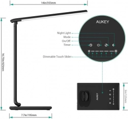 Practical features include a USB port for charging your phone or headphones, a 1-hour auto-off timer for energy saving, and a night mode to locate the lamp easily in the dark. The adjustable design with a rotating base and head lets you direct light precisely without shadows.