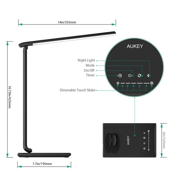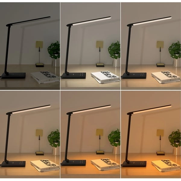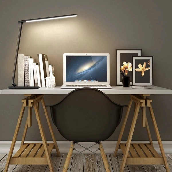 This versatile LED desk lamp distributes light evenly, minimizes glare, and offers comfortable eye protection. Using the intuitive touch panel, easily switch among 5 preset modes (from warm to cool white) and smoothly select 7 brightness levels for every activity—from focused work to relaxing evening lighting.