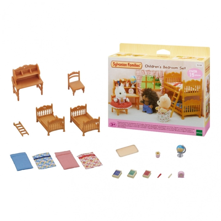 Expand your dollhouse with a charming country children’s room from SYLVANIAN FAMILIES. The set includes a bunk bed for two figures with mattresses, duvets, and a ladder, as well as a desk with chair and accessories (books, clock, globe, and more). With 18 finely crafted pieces, it inspires creativity and imagination in children aged 3+ and offers safe, long-lasting fun.