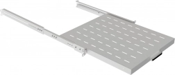 Sliding shelf for 19" racks for easy organization of IT equipment without mounting brackets. Depth 500 mm, height 1U, and load capacity up to 35 kg ensure safe placement of routers, switches, keyboards, and accessories. Perforation for airflow and four-point mounting ensure stability, cooling, and fast access thanks to the sliding design with handle.
