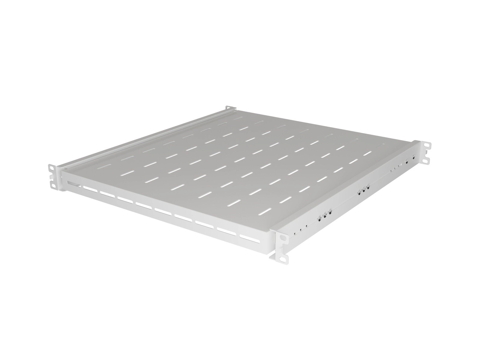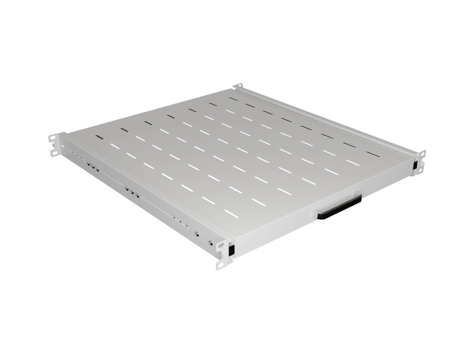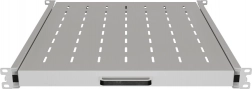 Universal 1U sliding shelf for 19" rack cabinets enhances the functionality of any telecom and server rack. It allows convenient storage of devices without rack rails, improves organization, and simplifies service thanks to the smooth slide-out front section with handle.