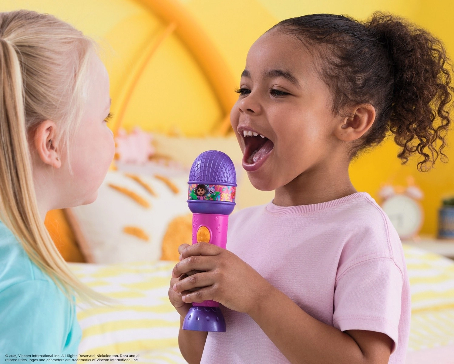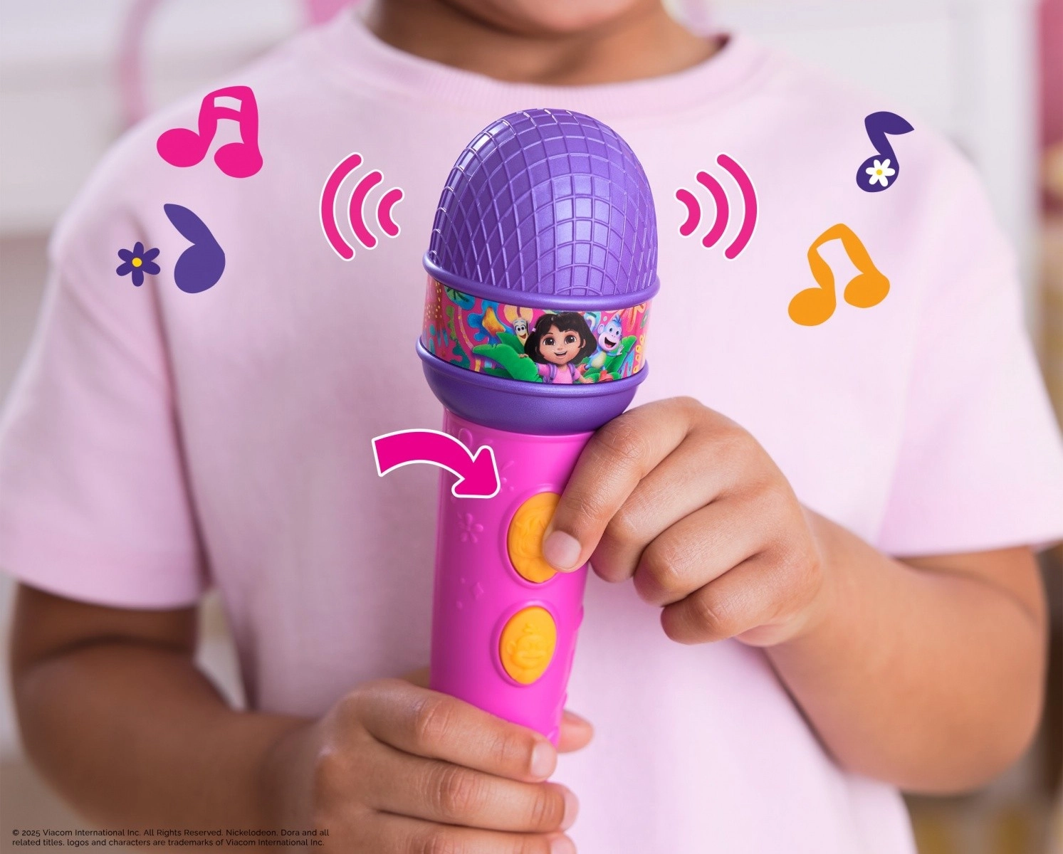 Discover the magic of singing with the DORA kids’ microphone! This colorful microphone offers sound effects, 5 favorite songs, and bilingual phrases from DORA and her friend Boots. With easy controls, kids will enjoy singing, dancing, and role play – it’s the ideal size for small hands and batteries are included.