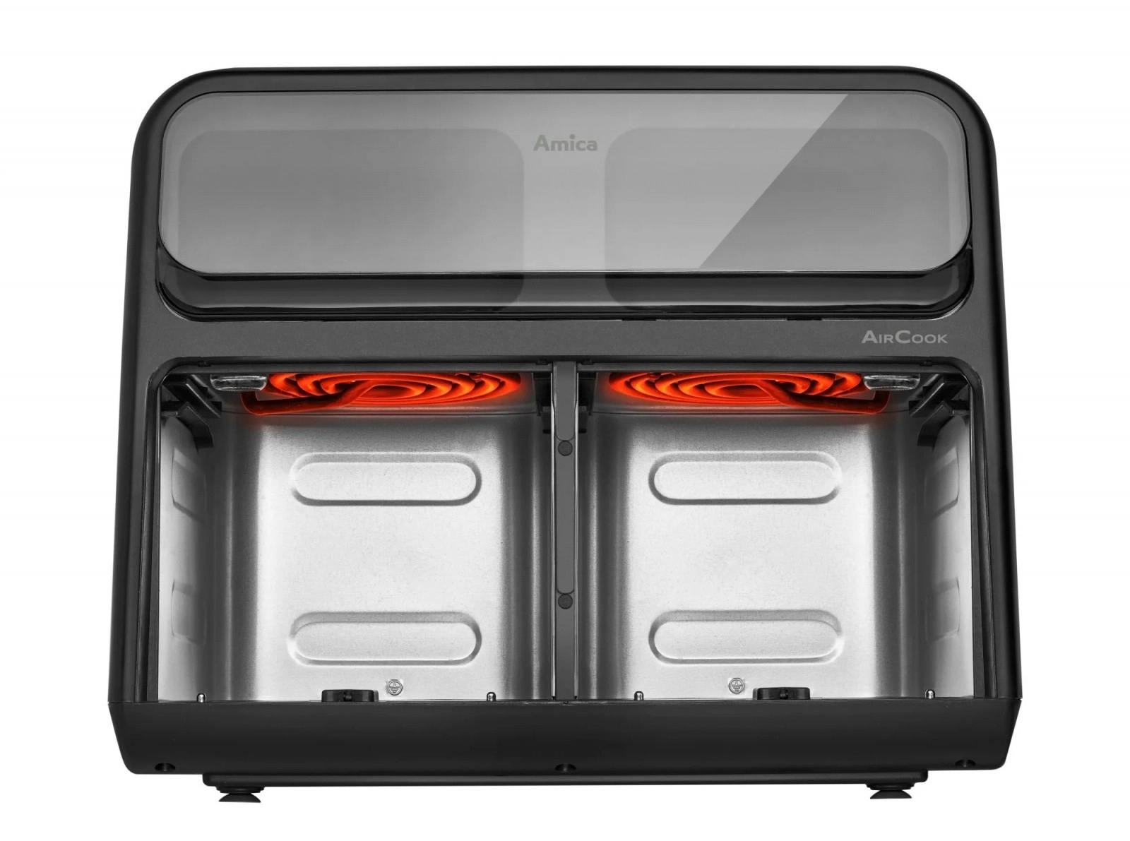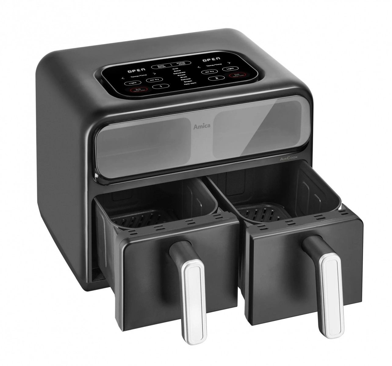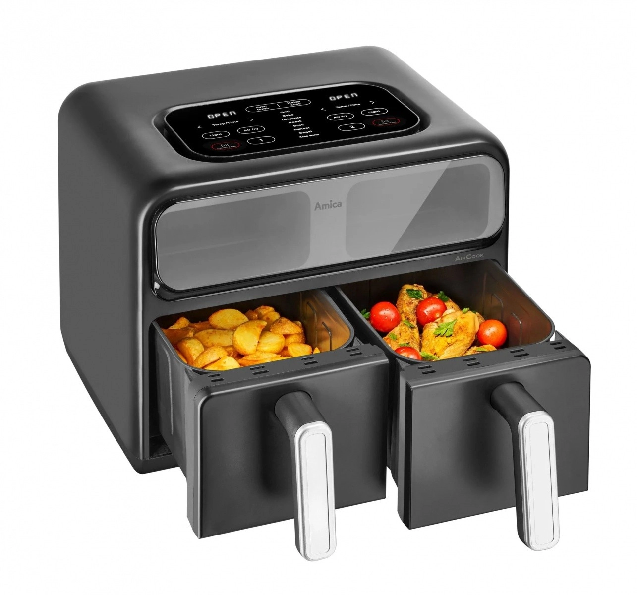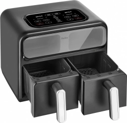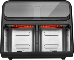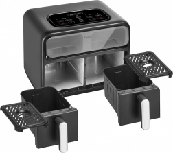 Discover a faster, healthier way to cook. The dual-chamber air fryer prepares your favorite dishes with minimal fat thanks to intense hot-air circulation. Two independent zones let you bake and fry different ingredients simultaneously, and the windows keep the process under control without unnecessary drawer opening.