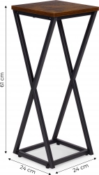 A stylish loft-style plant stand adds a modern industrial accent to your interior. Thanks to its compact dimensions and sturdy steel construction, it’s ideal for the living room, office, or terrace. Powder-coated steel, a stable frame with cross braces, a wood-look top, and non-slip feet to protect the floor. Maximum load 5 kg.