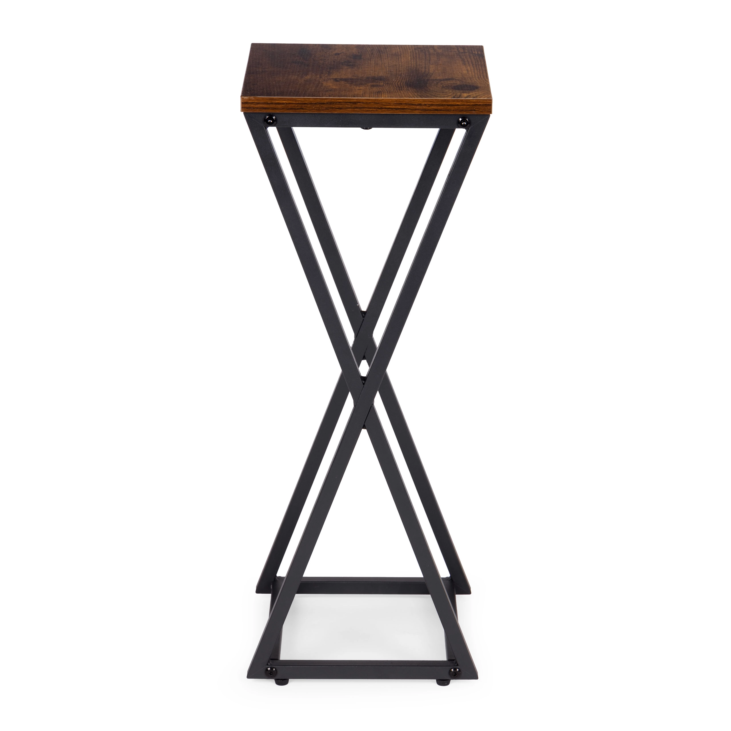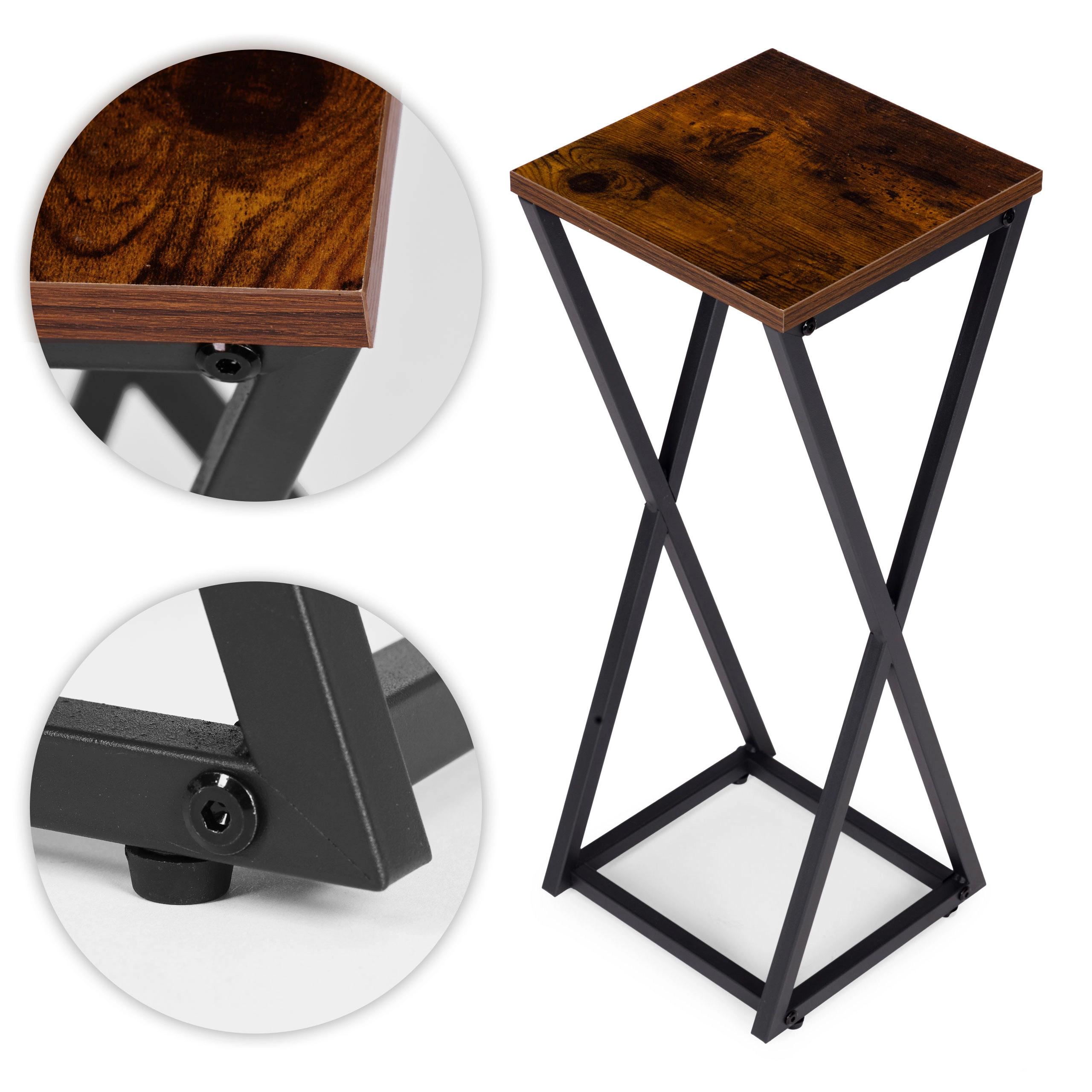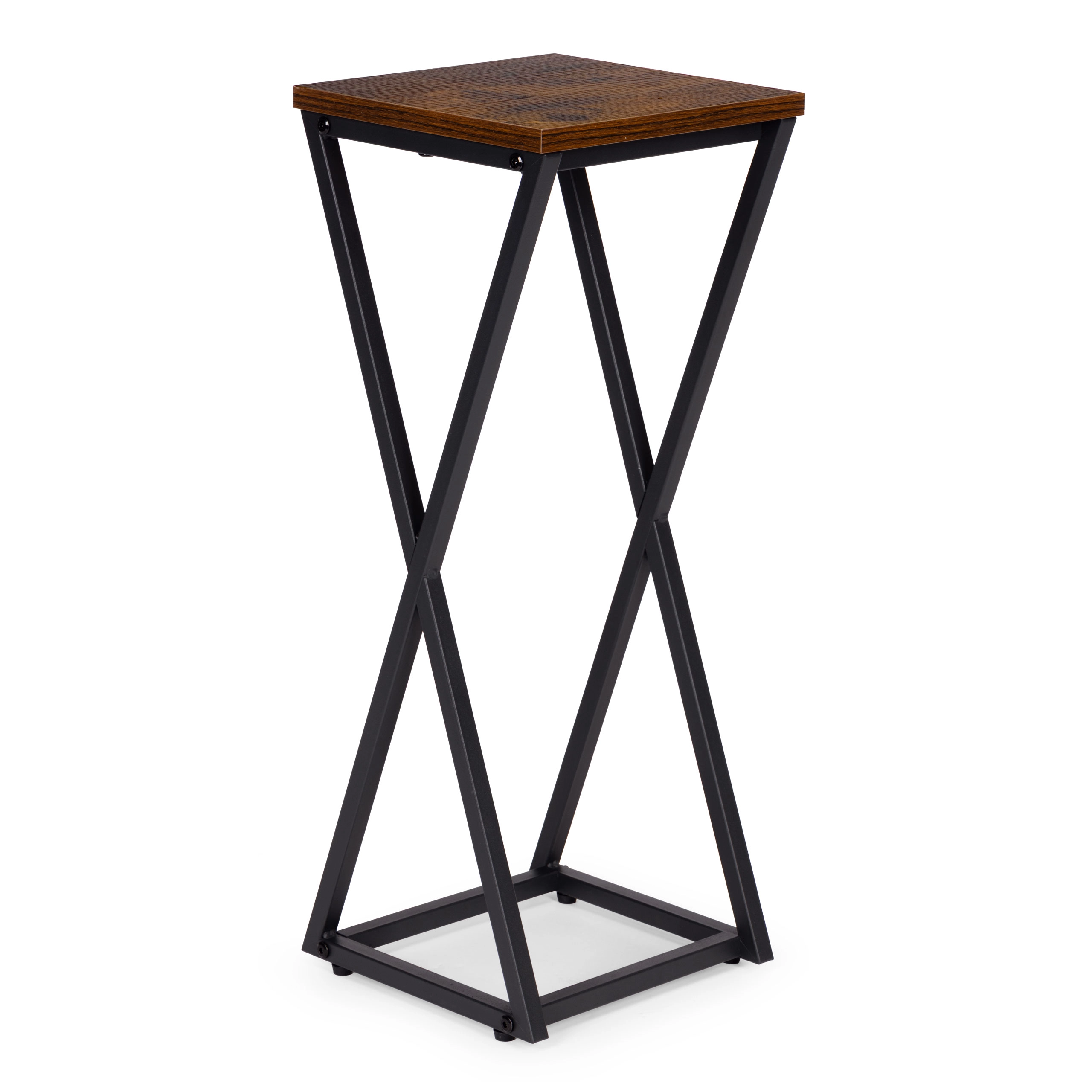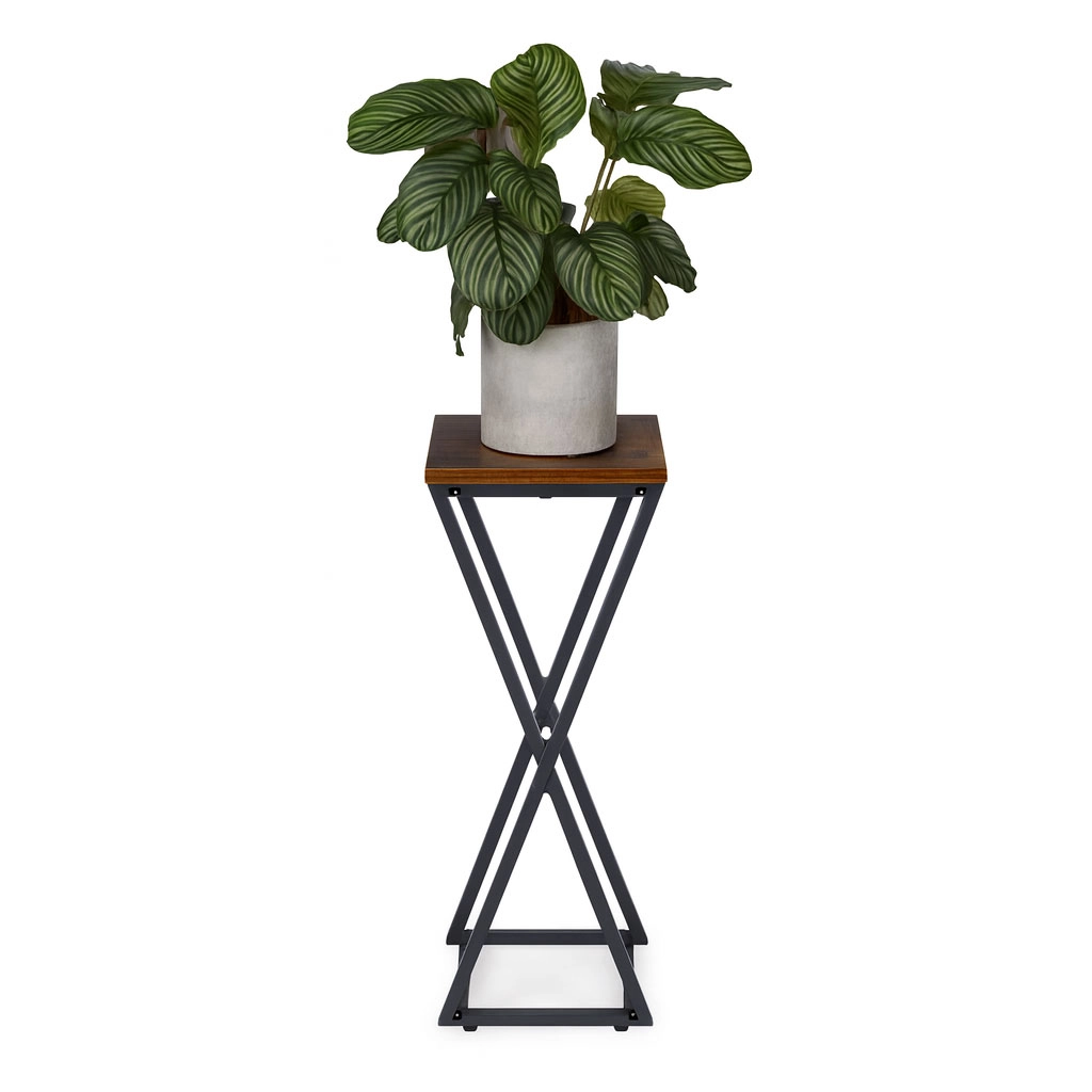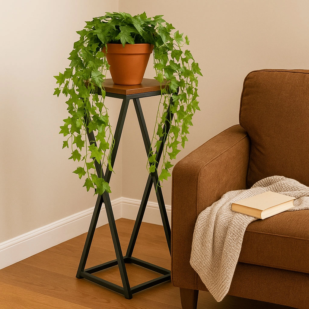 Showcase your favorite plants in style while saving space. This tall stand with a geometric metal frame and a square wood-look top elegantly elevates planters, vases, or decor. Its minimalist industrial design pairs easily with modern interiors, adding lightness and visual order.