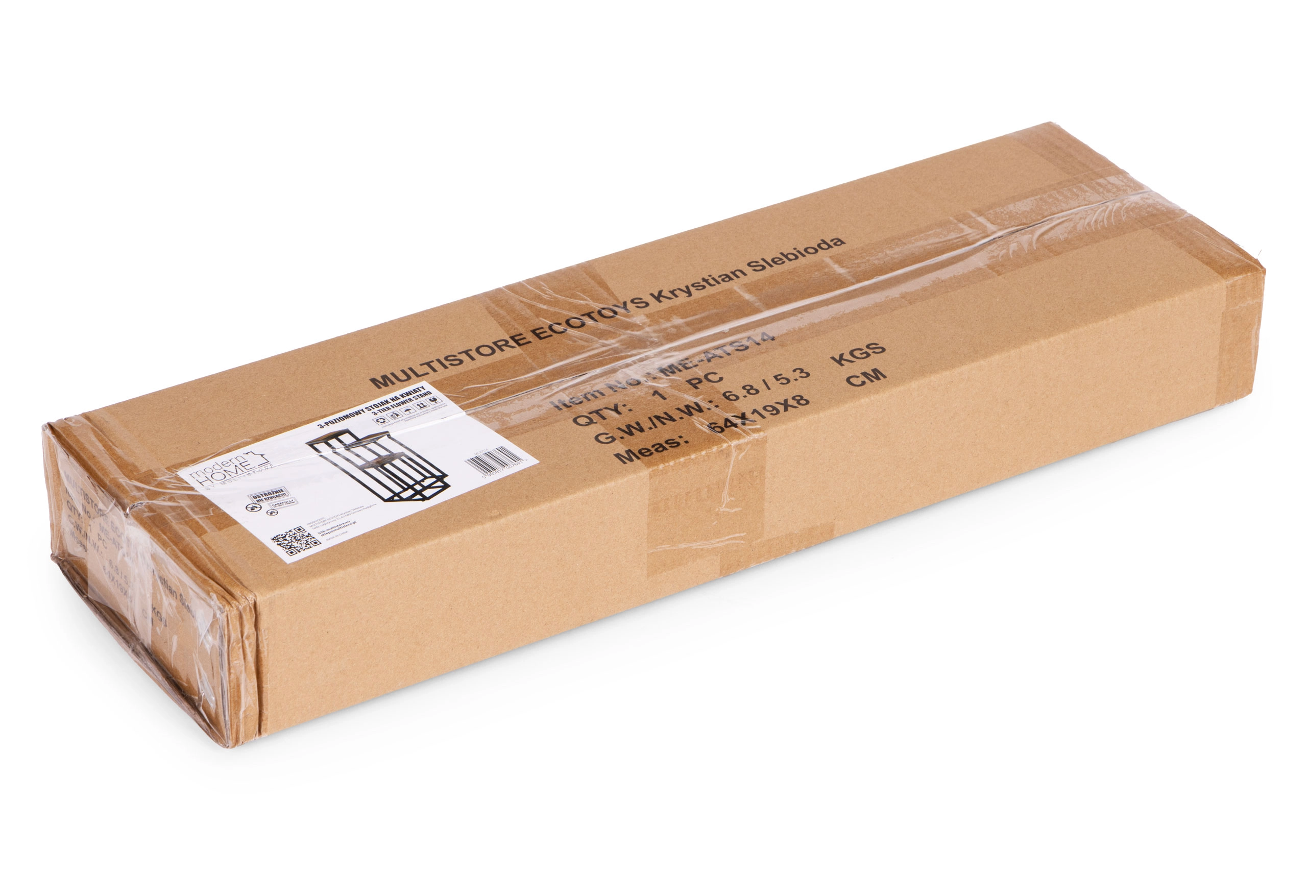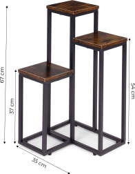 A stylish loft plant stand with three shelves from MODERNHOME that fits perfectly in apartments, offices, and commercial spaces. It offers a modern industrial design, a stable powder-coated steel frame, 3 practical chipboard shelves, and non-slip feet. Its compact dimensions help save space and create an impressive green display with a load capacity of up to 5 kg.
