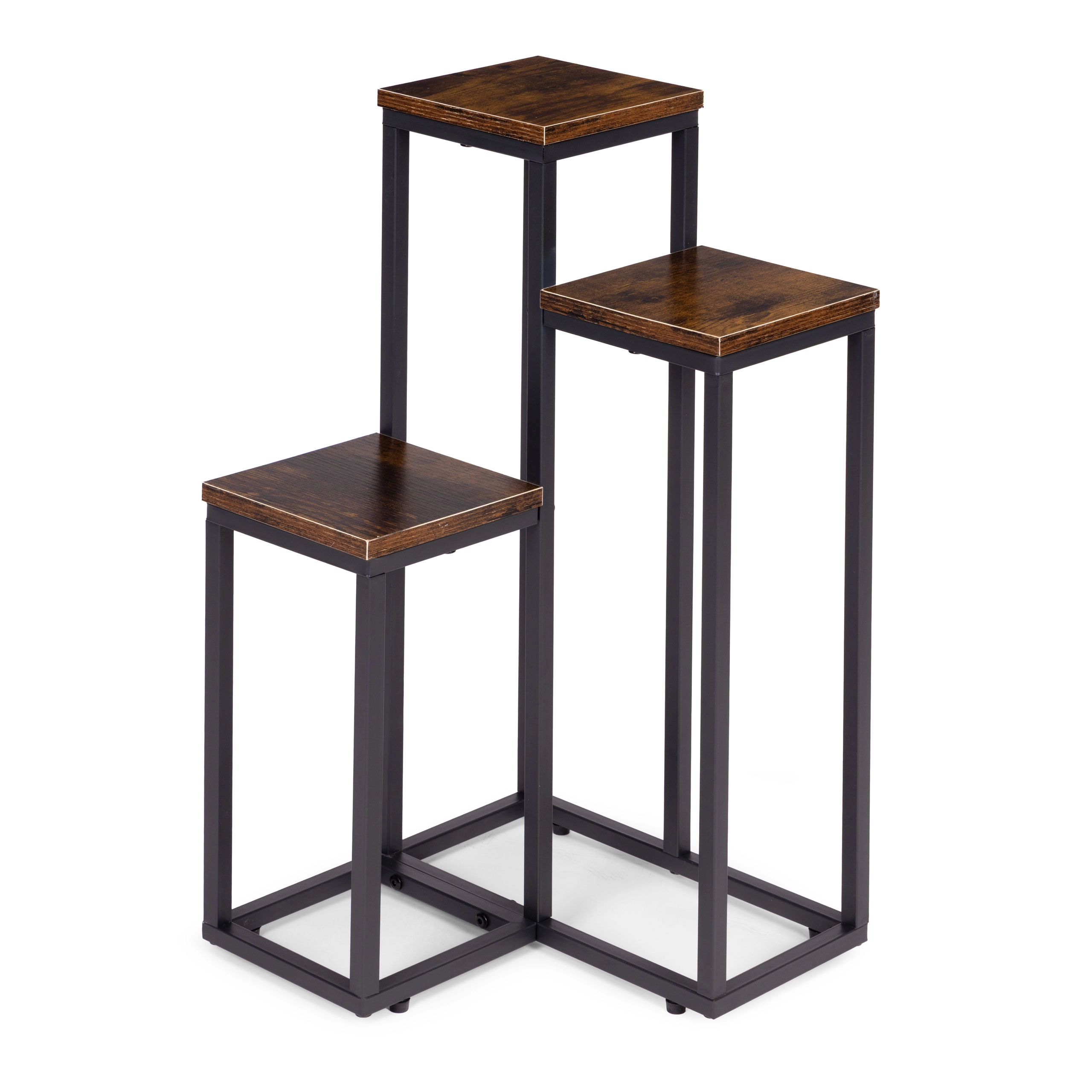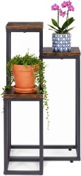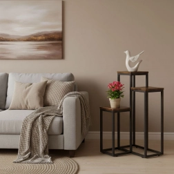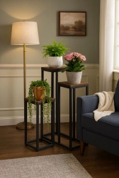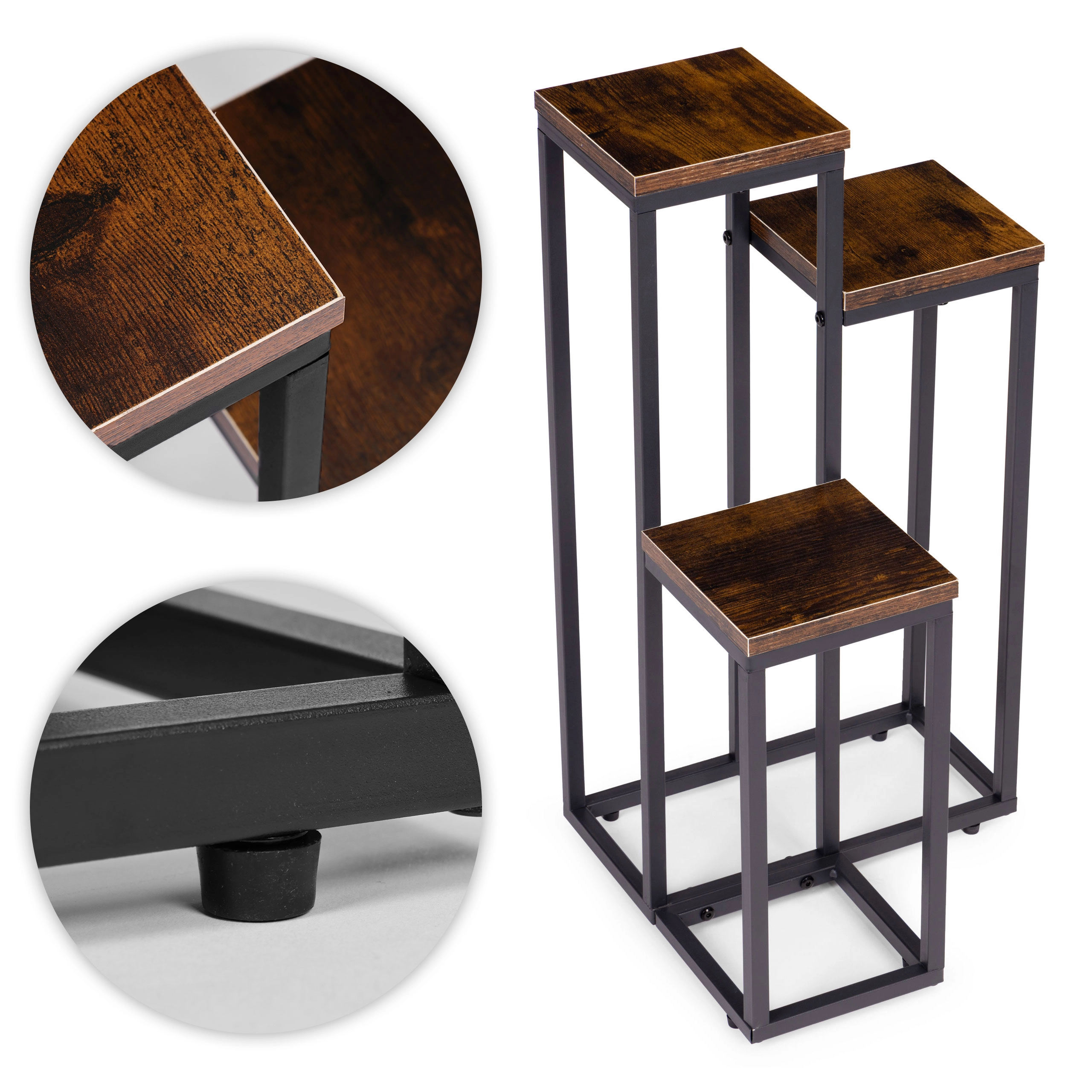The powder-coated steel frame resists corrosion and mechanical wear, while the natural wood-look shelves emphasize the modern loft character. Non-slip feet enhance stability and protect floors from scratches. The 5 kg maximum load is ideal for most plant pots and decorations.