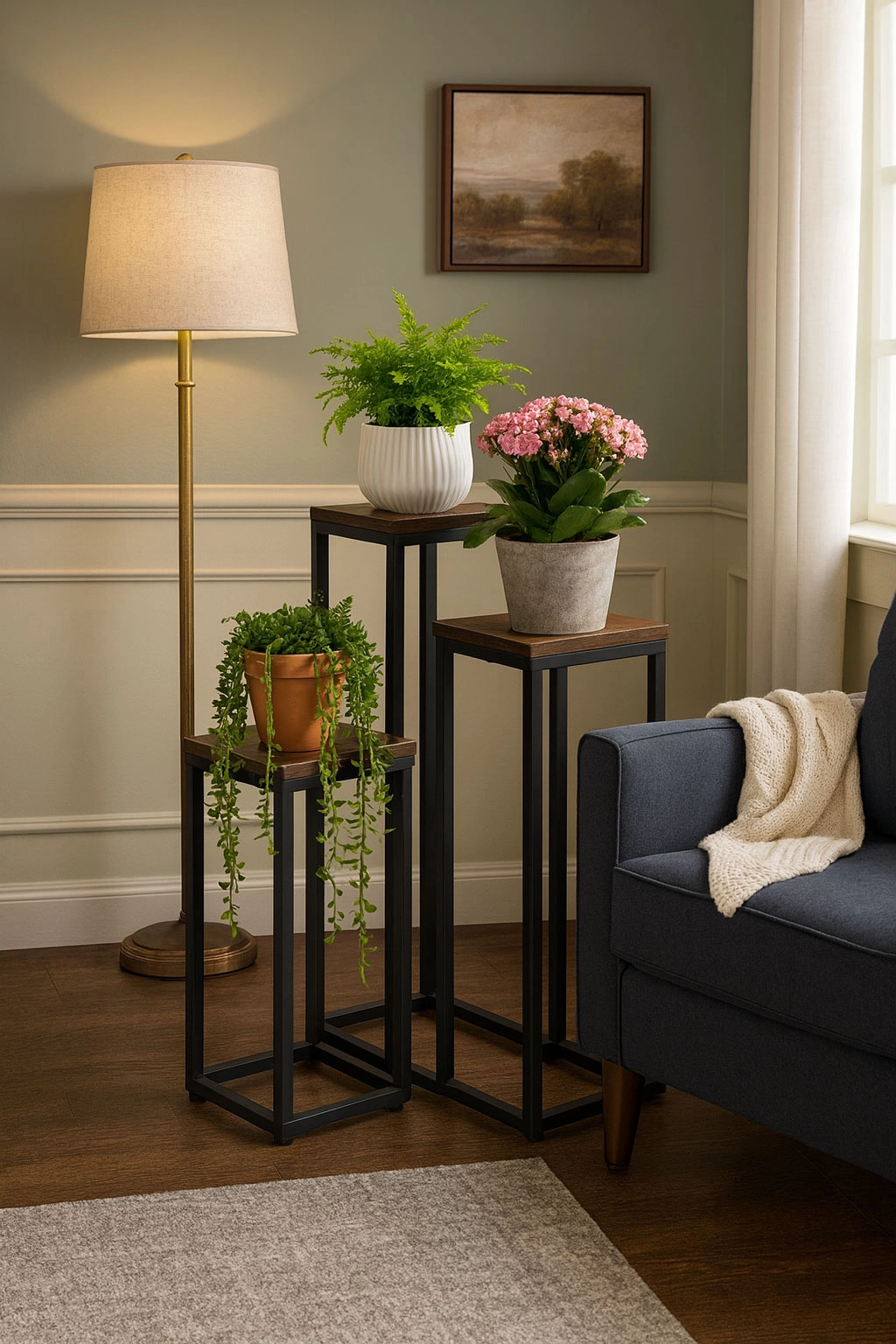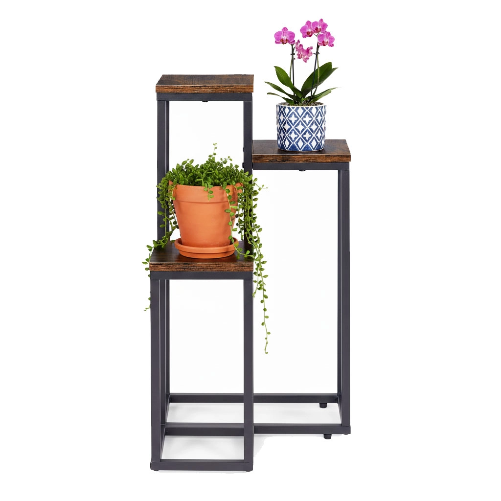 Display your favorite houseplants in style and with clear organization. This loft plant stand combines an industrial look with practical solutions for everyday use—three staggered shelves make plant care easier, improve light access, and add coziness to the interior. Thanks to its versatile dimensions, it suits the living room, home office, hallway, or kitchen for herbs.