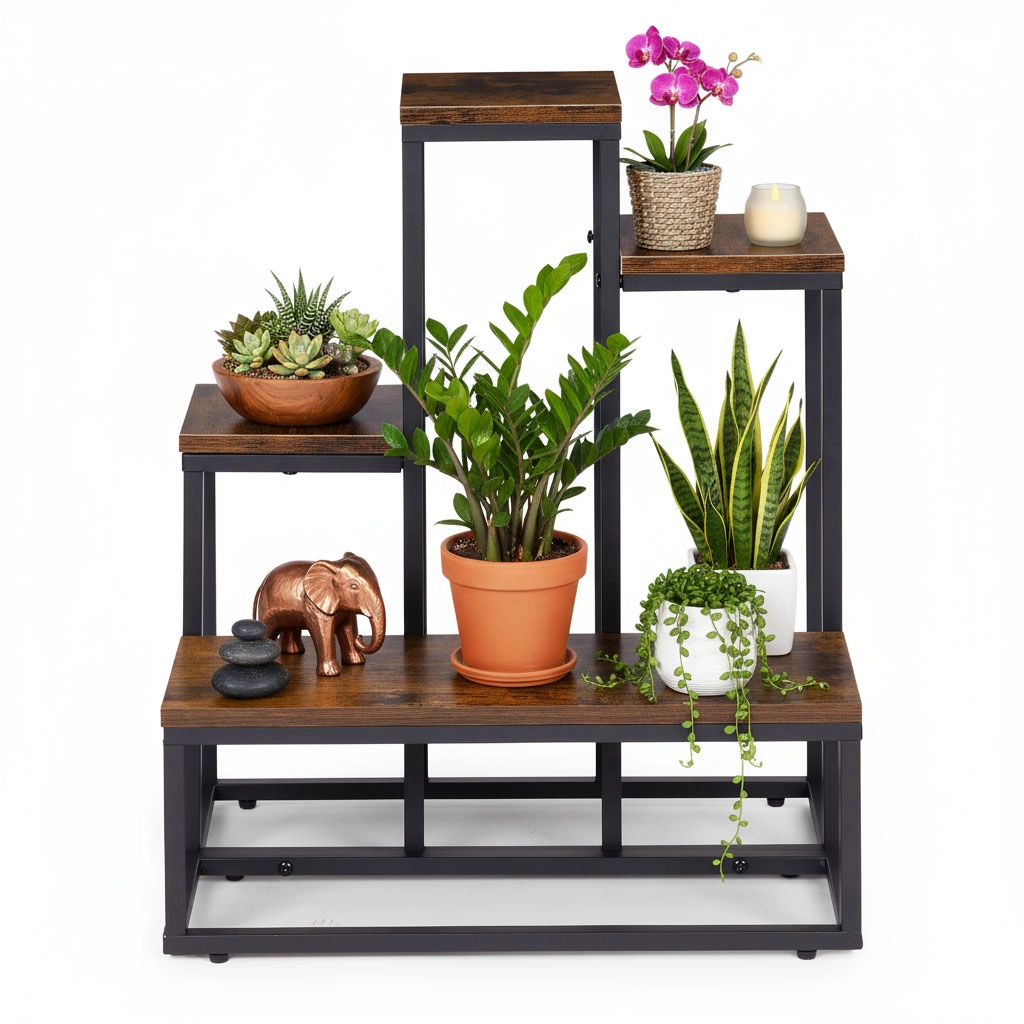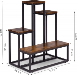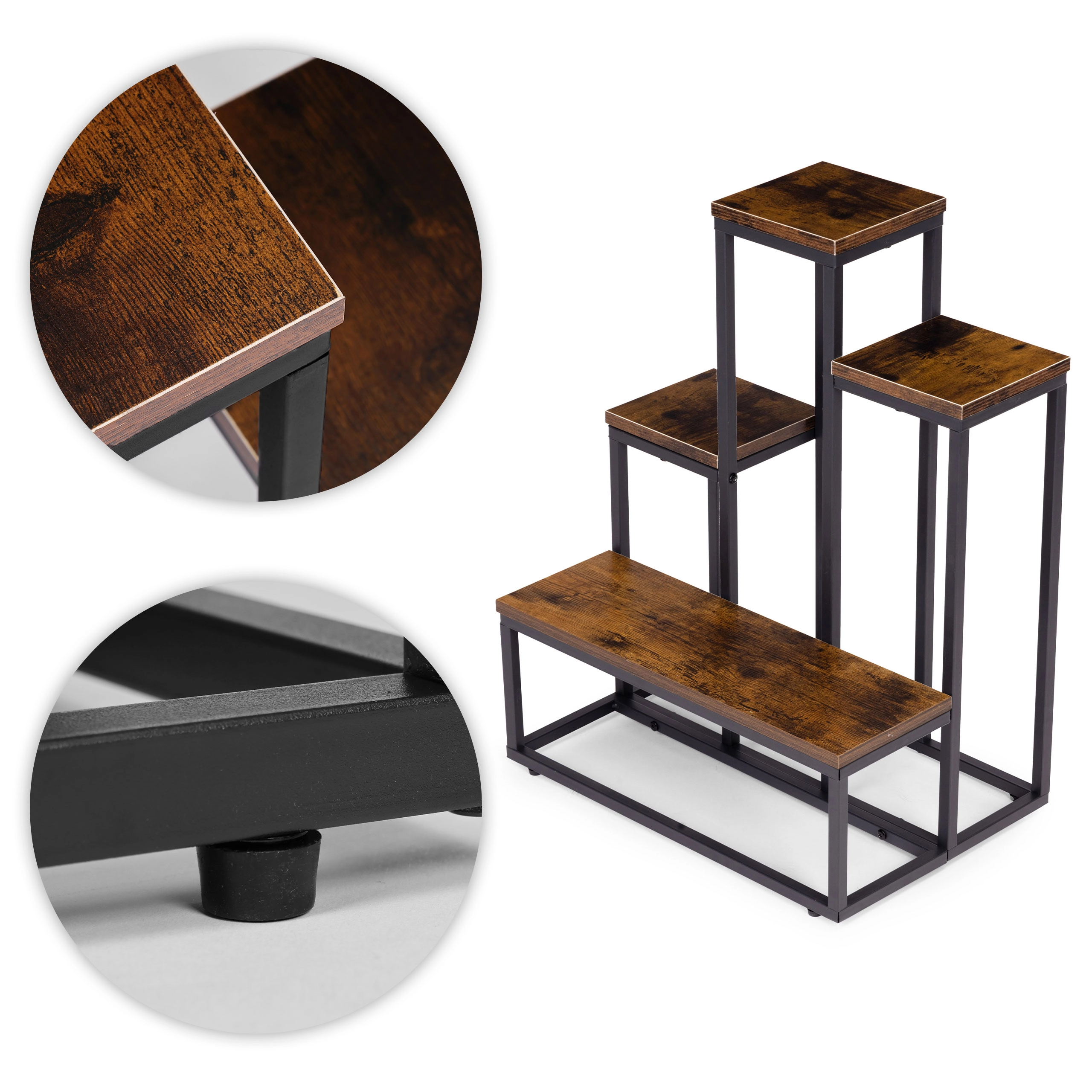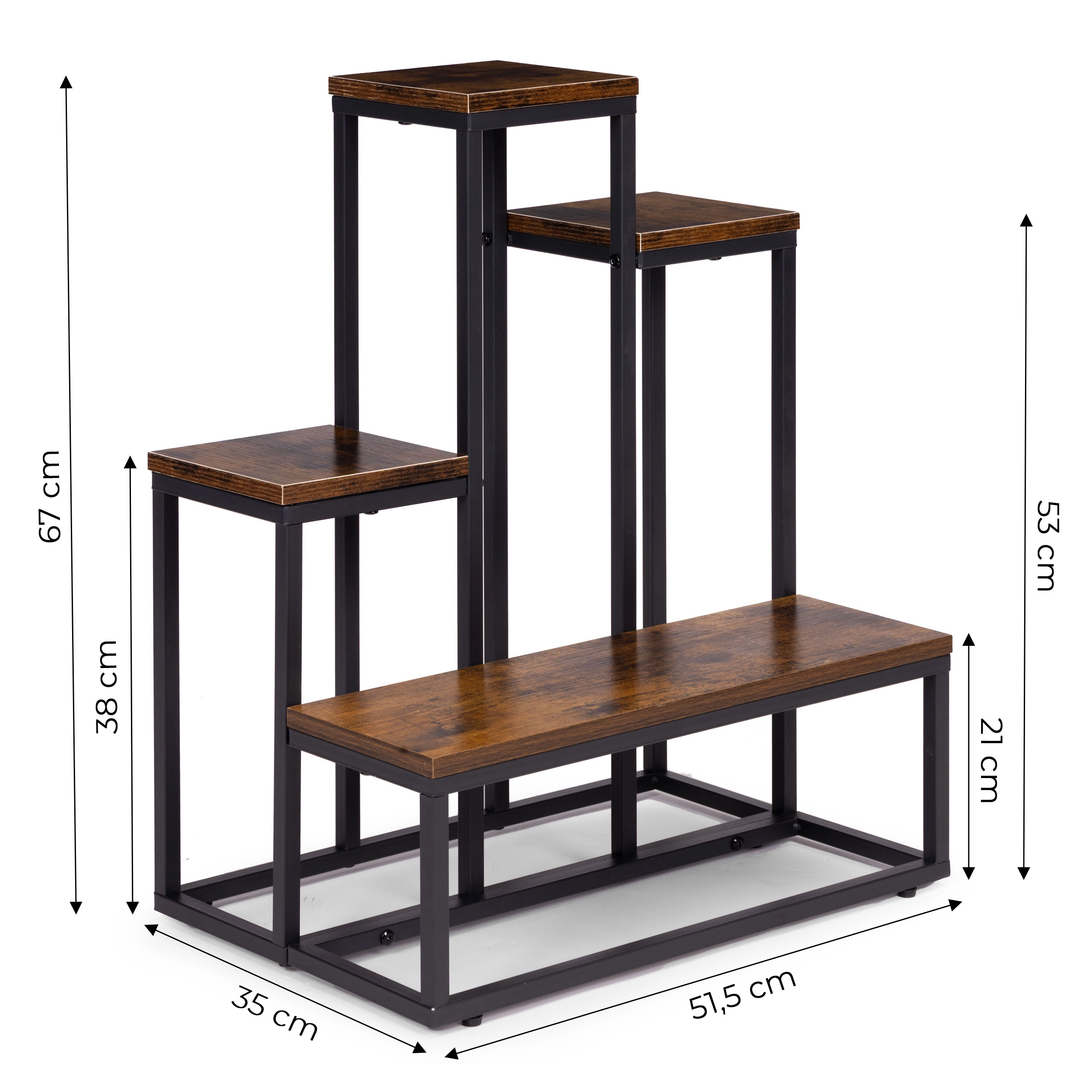 An elegant loft-style plant stand combining powder-coated steel and a wood-look finish for a modern appearance. It offers 4 practical shelves for plants and decor, non-slip feet to protect your floor, and compact dimensions to save space. Ideal for the living room, office, and commercial spaces.