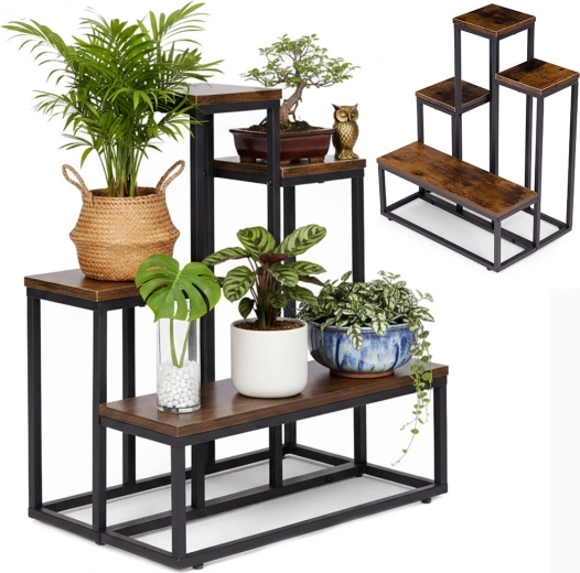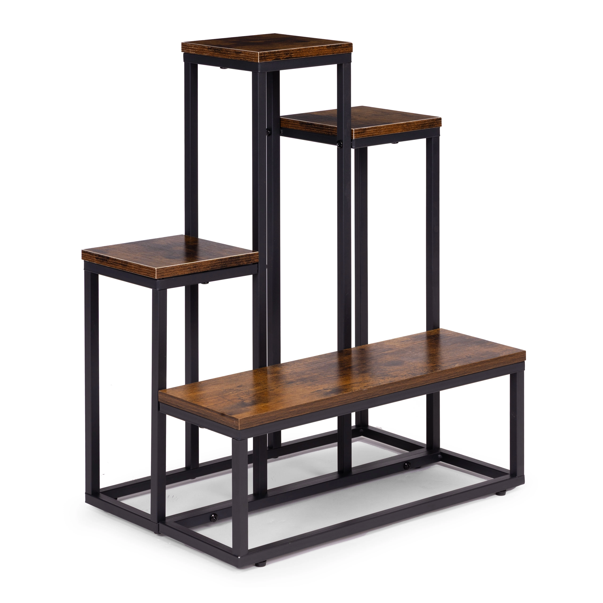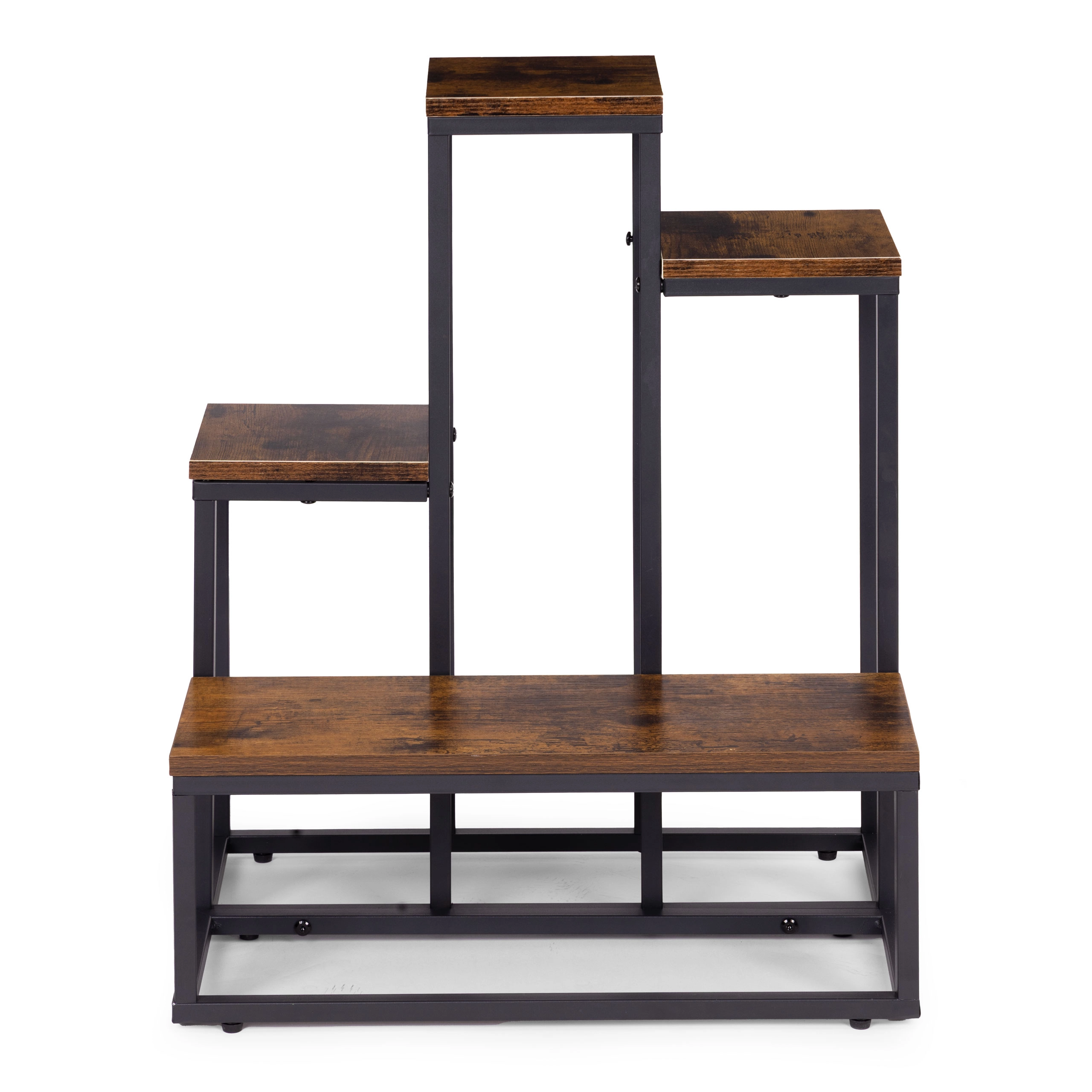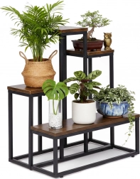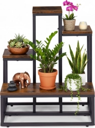 An elegant loft-style plant stand combining powder-coated steel and a wood-look finish for a modern appearance. It offers 4 practical shelves for plants and decor, non-slip feet to protect your floor, and compact dimensions to save space. Ideal for the living room, office, and commercial spaces.