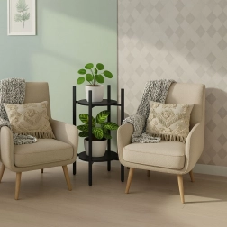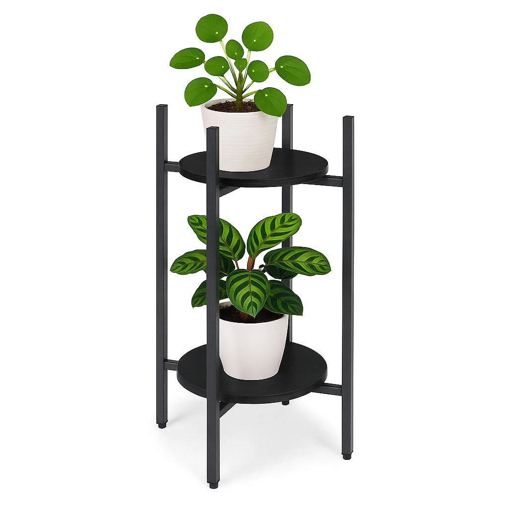 Discover a smart solution for your green decor. The MODERNHOME two-tier plant stand combines a clean, modern look with practical space use. Round metal shelves elegantly highlight herbs in the kitchen, ferns in the hallway, and decorative plants in the living room, helping keep the interior neat and airy.