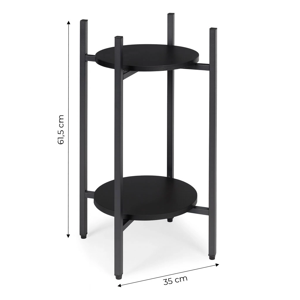 An elegant two-tier plant stand made of durable steel offers a modern minimalist design, compact dimensions, and stable metal shelves. Thanks to its powder-coated finish, it is corrosion-resistant, features non-slip feet, and supports up to 5 kg. Ideal for stylish plant display at home, in the office, or in commercial spaces.