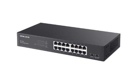 A reliable and fast network switch for businesses and home networks: Mercusys MS116GS offers 16 Gigabit RJ45 ports, plug-and-play installation, an isolation mode for enhanced security, and loop protection in a durable metal chassis.