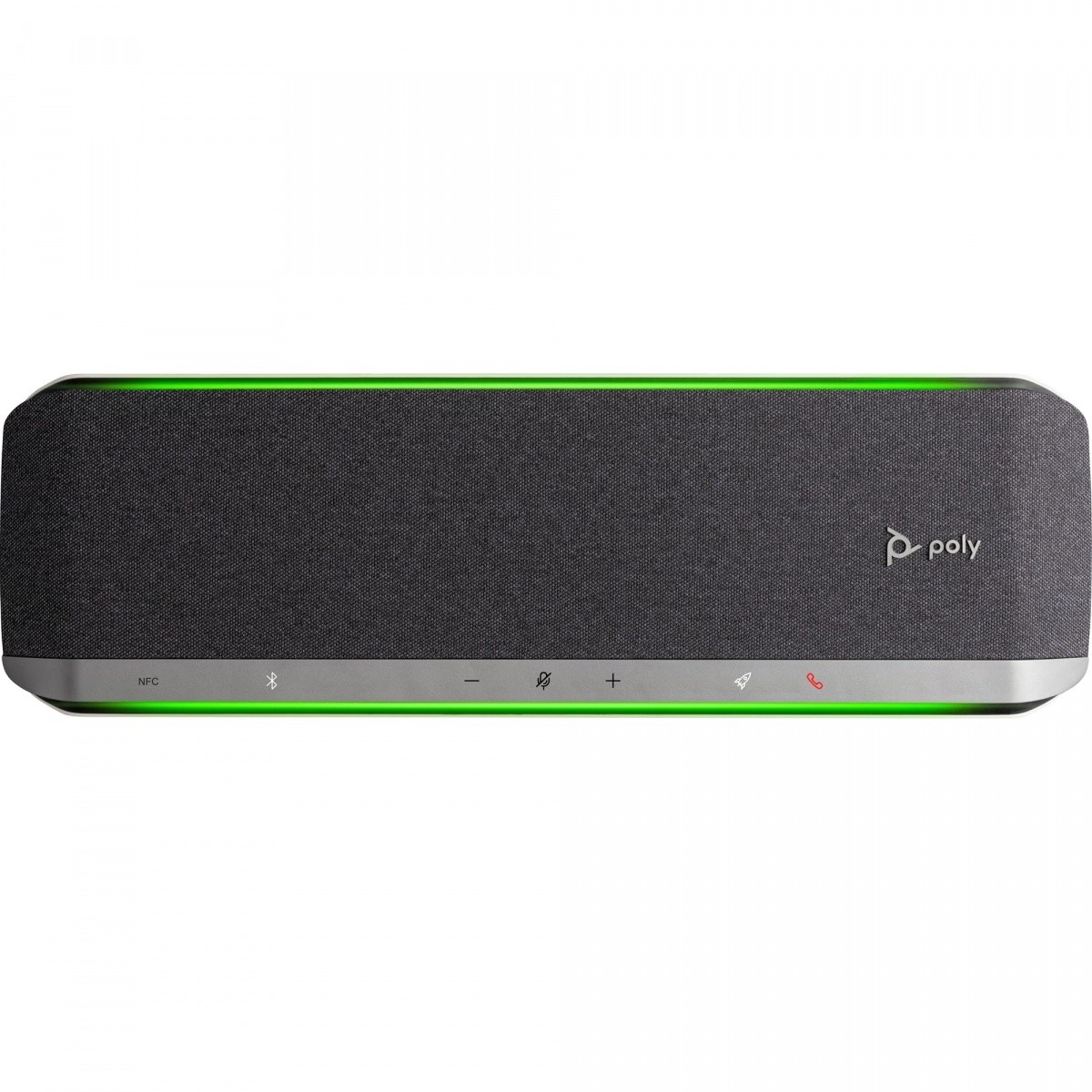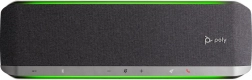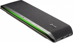 The professional conference speaker Poly Sync 60 fills the room with powerful, clear sound thanks to dual speakers and six directional microphones. It offers Bluetooth and USB-A/USB-C connectivity, full-duplex audio, echo and noise suppression, and adaptive gain control for consistent speaker volume.