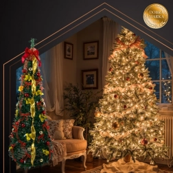 Enjoy the magic of Christmas without the extra work. The RUHHY tree features a smart pop-up construction, so you can set it up and fold it down in moments. The elegant gold and red combination looks festive and timeless, perfect for living rooms, offices, and smaller apartments.
